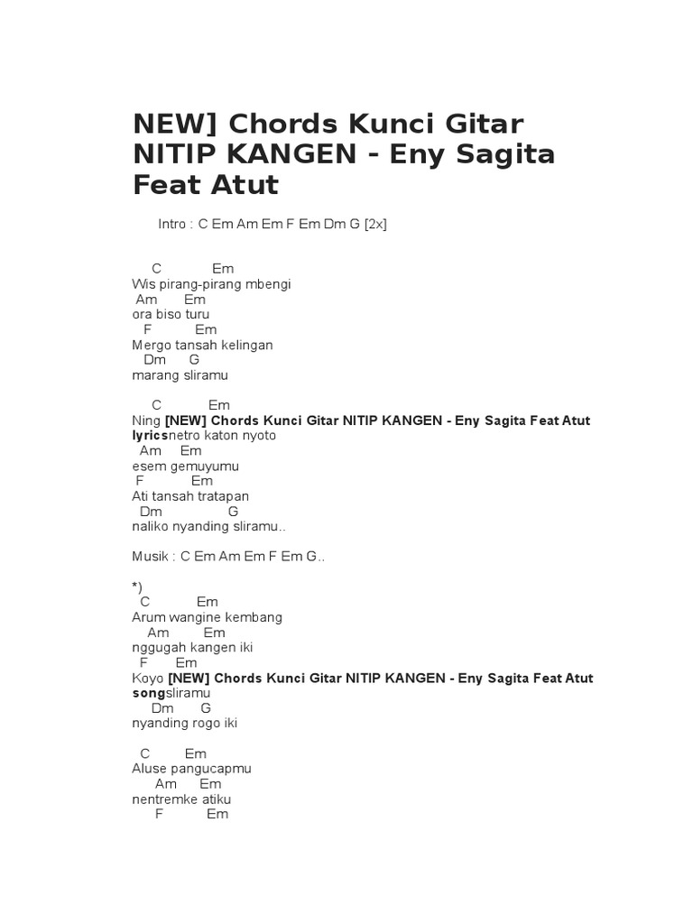 Eling awakmu gak iso turu D aku kangen awakmu opo koncomu A aku suwi delok jam wis setengah telu Reff II. G D nelongso ati iki Em D eling sing mbok janjeni C G netes eluh ning nggon pipi C D nahan loro neng njero ati. Wis tak lali-lali Malah sansaya kelingan Nganti tekan mbesok kapan nggonku Mendem ora bisa turu.